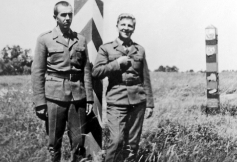 Za Bartoszycami m. Warszkajty 1966-1968. Przy słupach granicznych Polski i ZSRR. Z lewej Ignacy Pragnący i Edmund Sikorski.