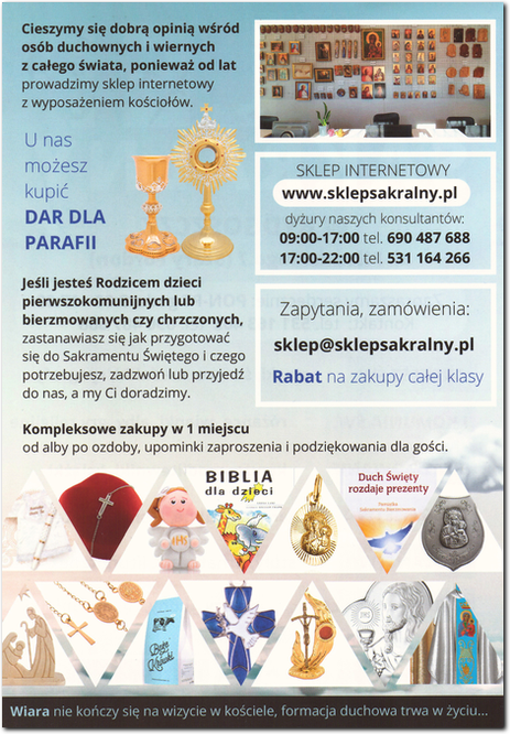 W celu poznania pełnych danych firmy, adresu i godzin otwarcia zapraszamy na stronę www.sklepsakralny.pl